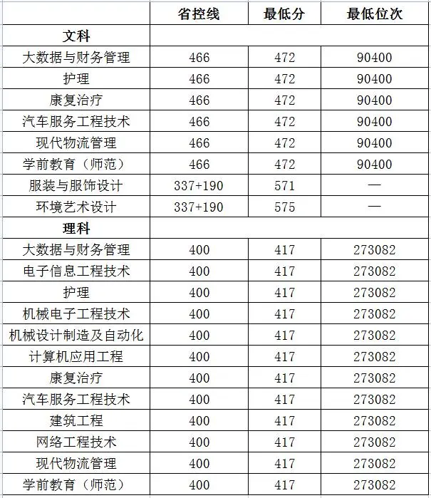 | 專業(yè) | 省控線 | 最低分 | 最低位次 | 均分 |